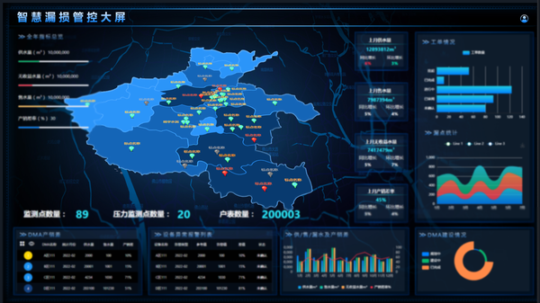 對供水管網設施及水質提供實時監測,通過各類智能監測終端保障供水壓力平衡、流量穩定和供水安全,及時發現爆管并預警,避免大面積城市停水事故發生,為管網爆管預警分析、用水趨勢分析和泄漏量預警分析提供數據支撐。